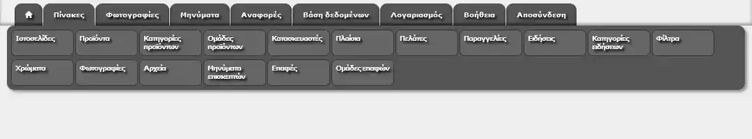 Σε όλους τους πίνακες η εμφάνιση και λειτουργία της εφαρμογής έχει παρόμοια λειτουργικότητα που βασίζεται στις ενέργειες που μπορείτε να εκτελέσετε: