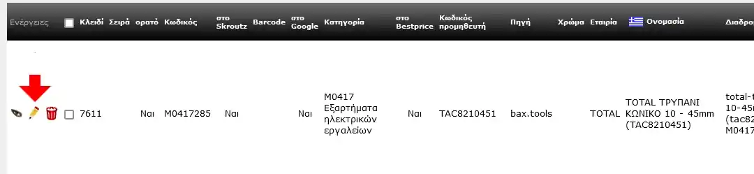 Για να μεταβάλλετε / τροποποιήσετε μια εγγραφή / γραμμή του πίνακα, κάντε κλικ στο εικονίδιο με το μολύβι αριστερά από τη γραμμή που επιθυμείτε να αλλάξετε. Θα οδηγηθείτε στην αντίστοιχη φόρμα με τα στοιχεία της εγγραφής / γραμμής όπου μπορείτε να τροποποιήσετε τα στοιχεία που επιθυμείτε.
