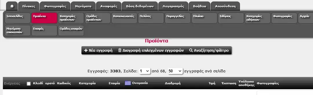 Στους πίνακες υπάρχει όλο το περιεχόμενο της βάσης δεδομένων του ιστοτόπου σας και σας επιτρέπει να δημιουργήσετε / μεταβάλλετε / διαγράψετε εγγραφές.