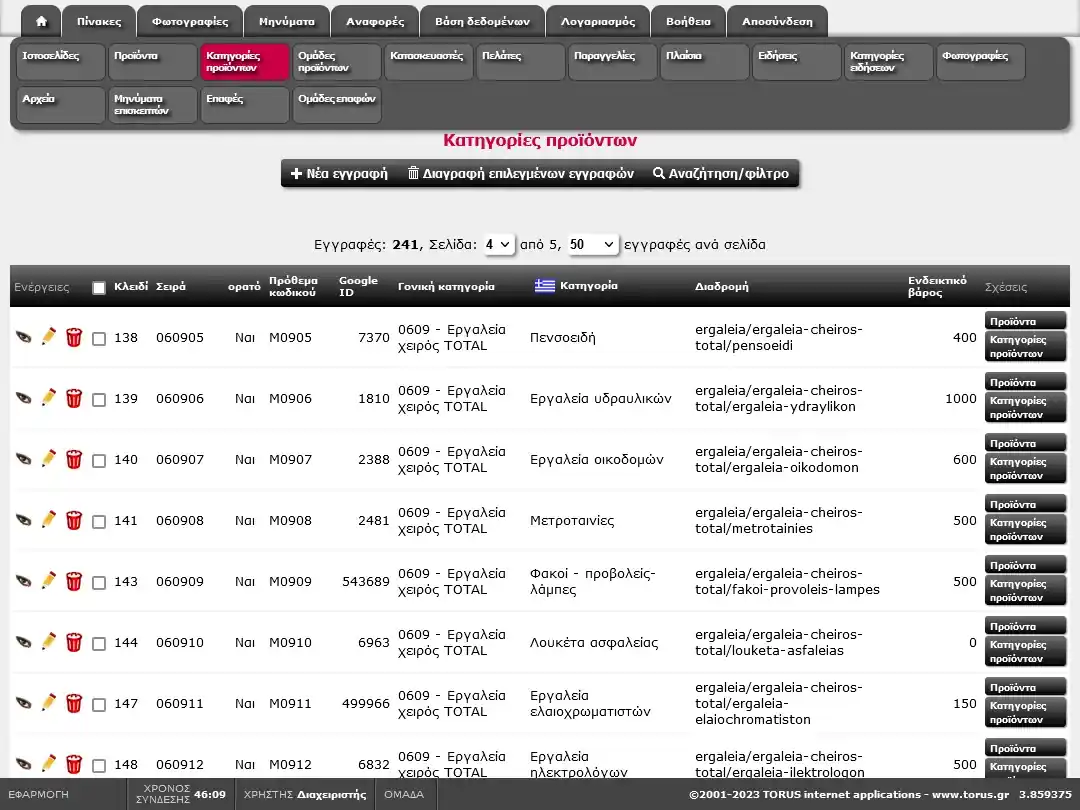 | Google ID | Το κλειδί της αντίστοιχης κατηγορίας του Google που χρησιμοποιείται για την εμφάνιση των προϊόντων της κατηγορίας στις αγορές του Google και του Facebook |