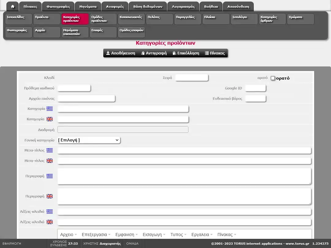 Εισαγωγή / Μεταβολή στοιχείων κατηγορίας