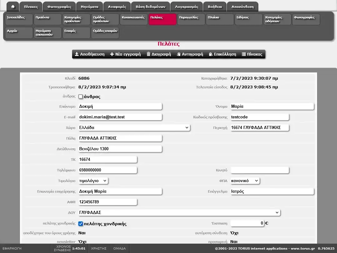 Στον πίνακα πελατών αποθηκεύονται τα στοιχεία πελατών του e-shop. Η εγγραφή των πελατών γίνεται συνήθως από τη διαδικασία παραγγελίας προϊόντων στο site ή εγγραφής πελάτη από το site, αλλά μπορεί να εγγραφεί και από εσάς μέσω του πίνακα πελατών.