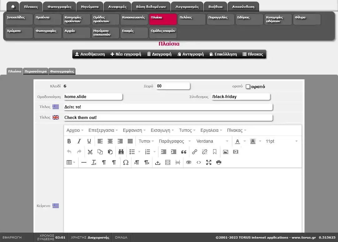 | Κλειδί | Μοναδικός αριθμός-κλειδί του πλαισίου |